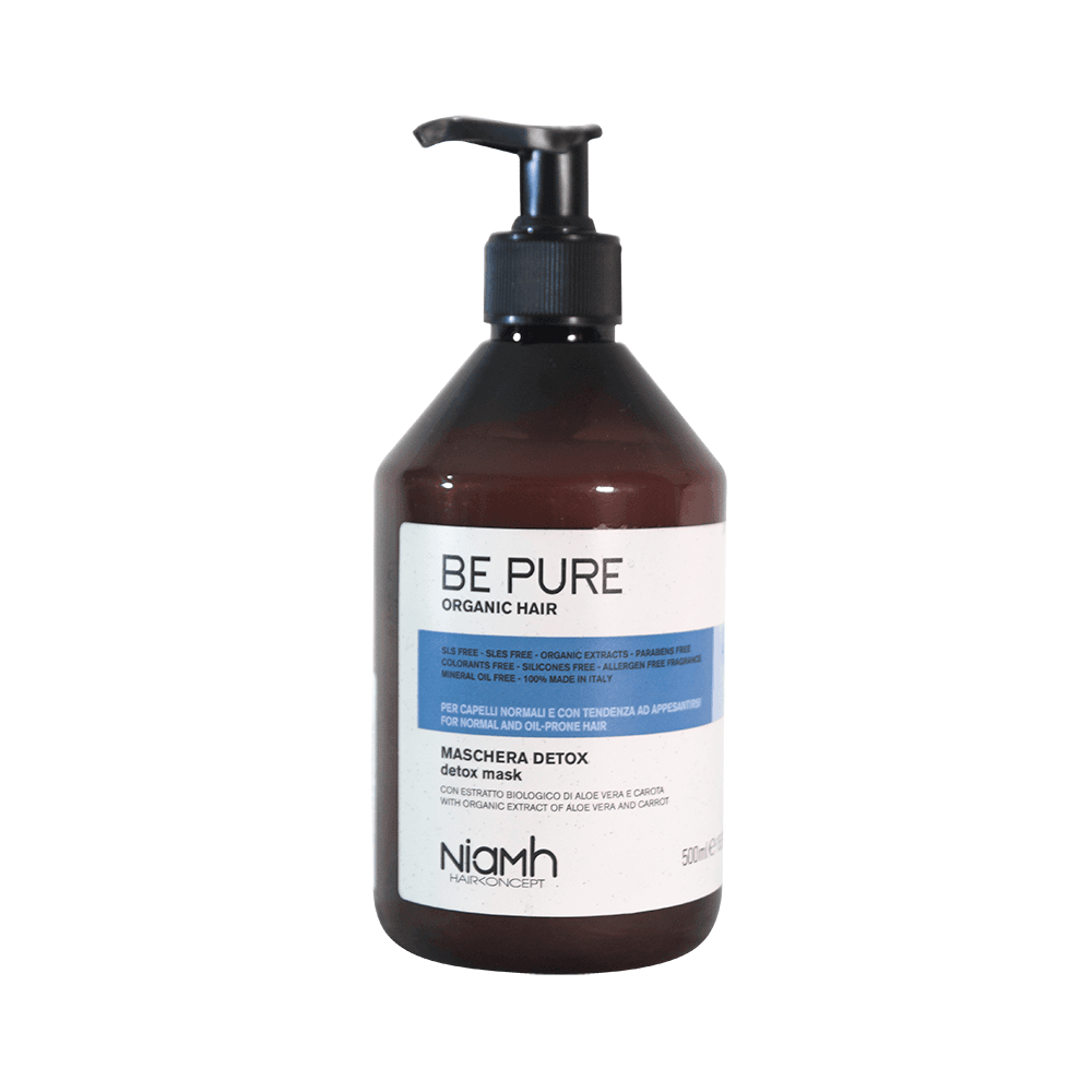Utilizada en combinación con champú y Exfoliante de la línea Be Pure Detox contrasta el efecto “graso” que contribuye a ensuciar fácilmente el cabello con tendencia a la grasa (exceso de sebo, smog, contaminación, etc.). La acción desintoxicante de la máscara equilibra el cuero cabelludo y la piel, gracias a la sinergia activa del Aloe y el Extracto de Zanahoria contenidos en la fórmula.